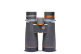 Demo binoculars include a neoprene neckstrap, lens caps, and a double-layered microfiber storage bag.